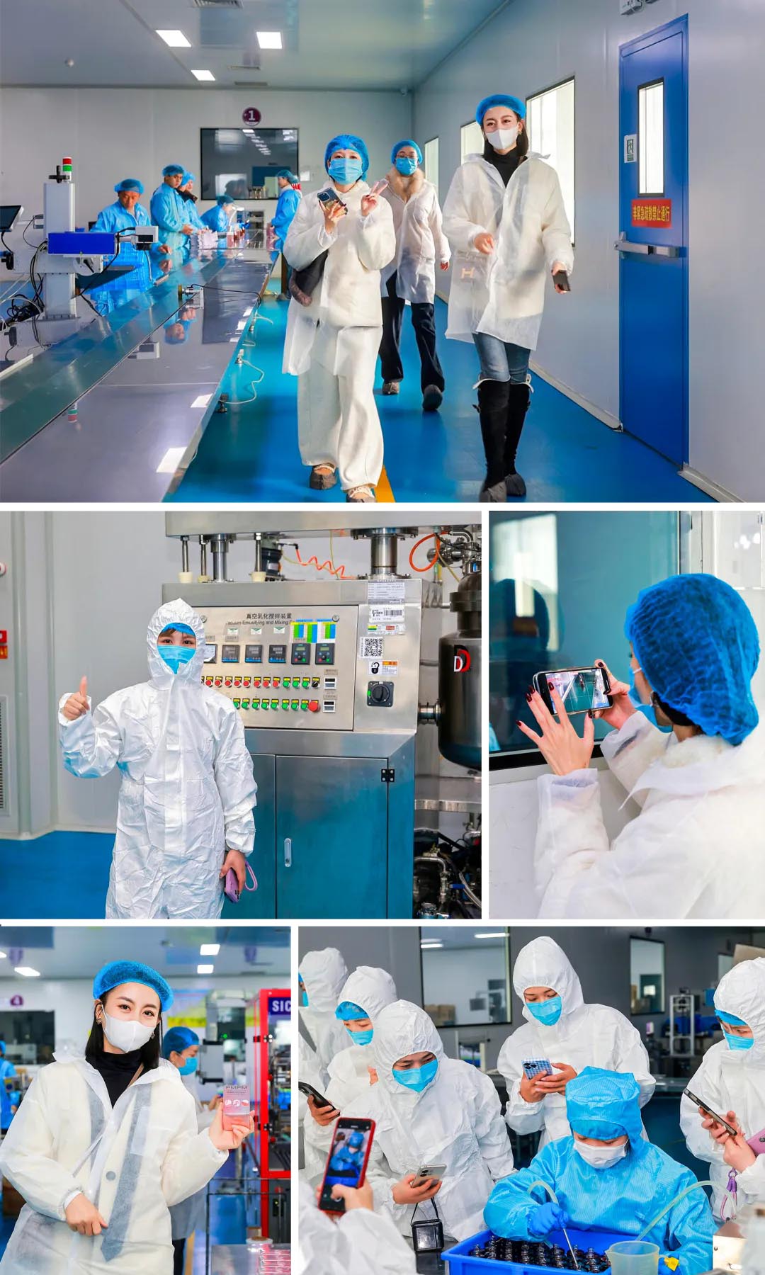 活动伊始,在御梵工作人员的引导下,PMPM与鲸灵伙伴分组换上专业的一次性防尘服与连体服,严格遵循GMPC生产车间管理规范,有序走进御梵核心生产区域。