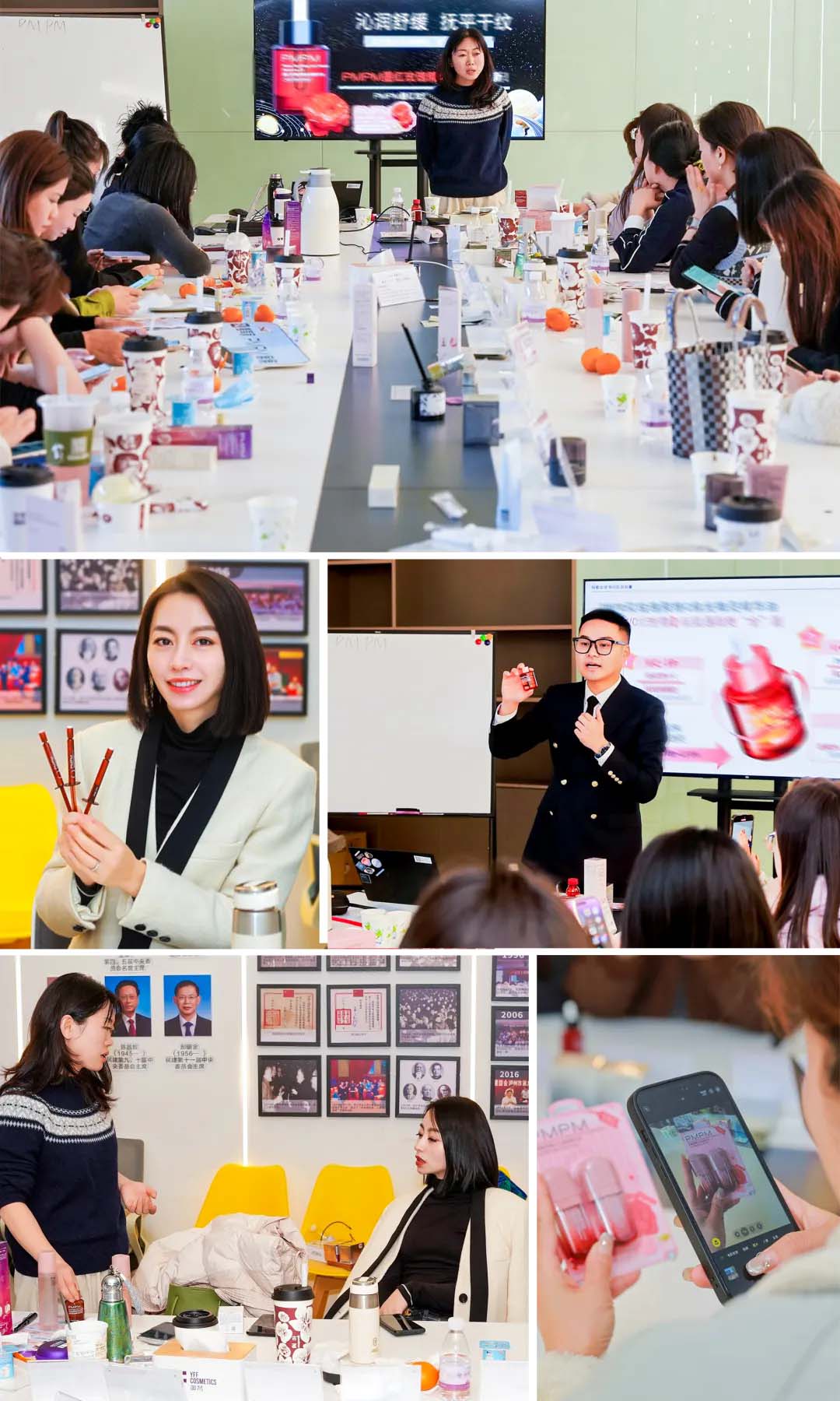展厅参观结束后,一场干货满满的专业分享在会议室展开。PMPM首席内容官结合我方生产实践,为大家深度拆解了PMPM产品的核心成分与配方理念,让在场伙伴清晰了解到产品功效背后的技术支撑,真正实现从“用产品”到“懂产品”的跨越。